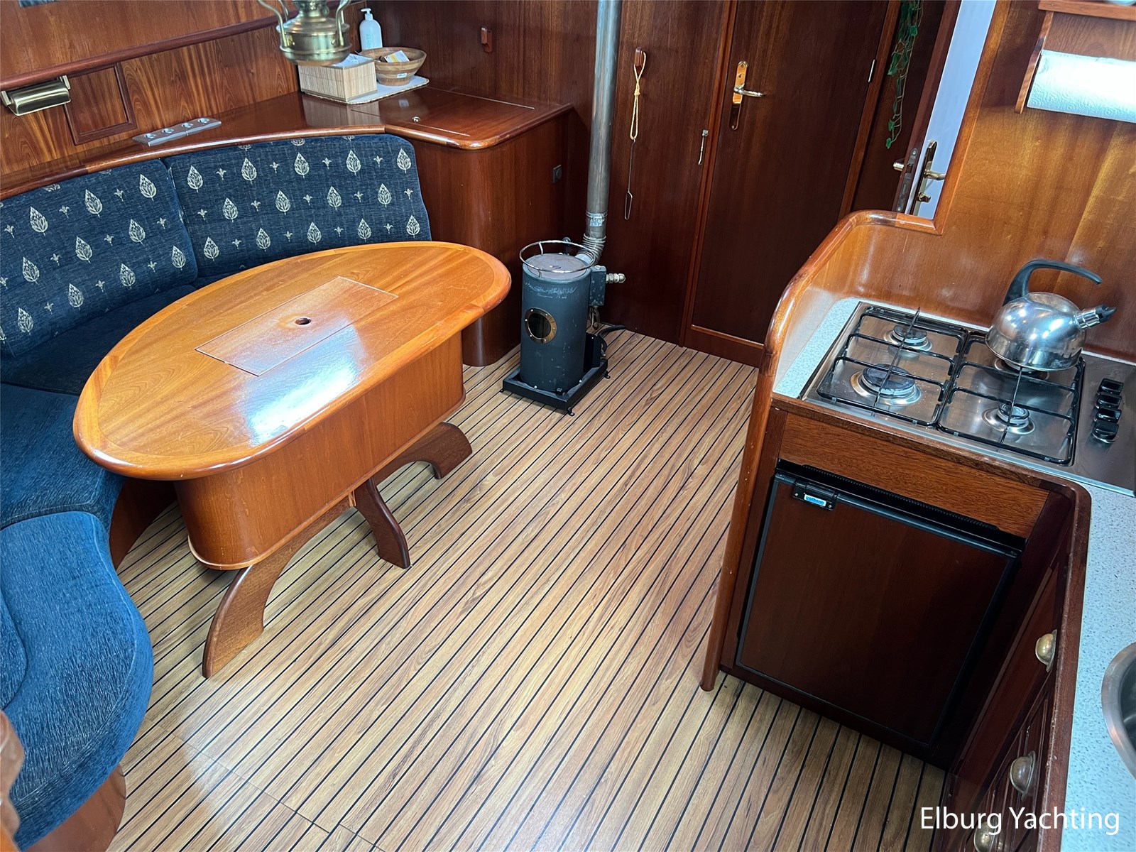Halfronde dinette beneden + mogelijkheid in stuurhuis